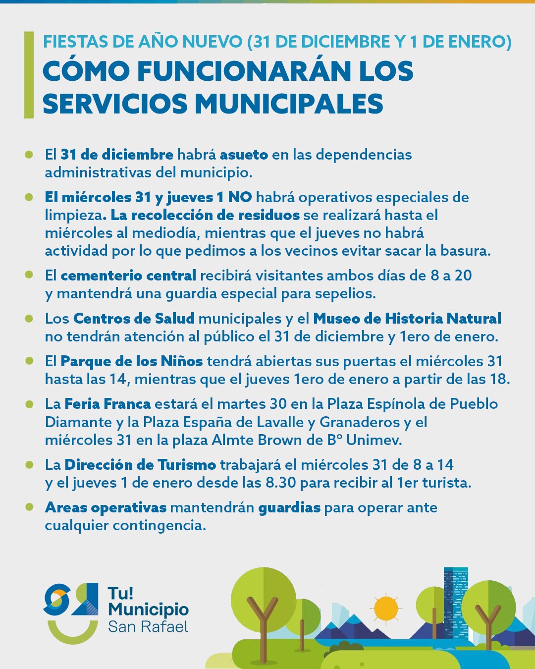 • CÓMO FUNCIONARÁN LOS SERVICIOS MUNICIPALES DURANTE LAS FIESTAS DE AÑO NUEVO