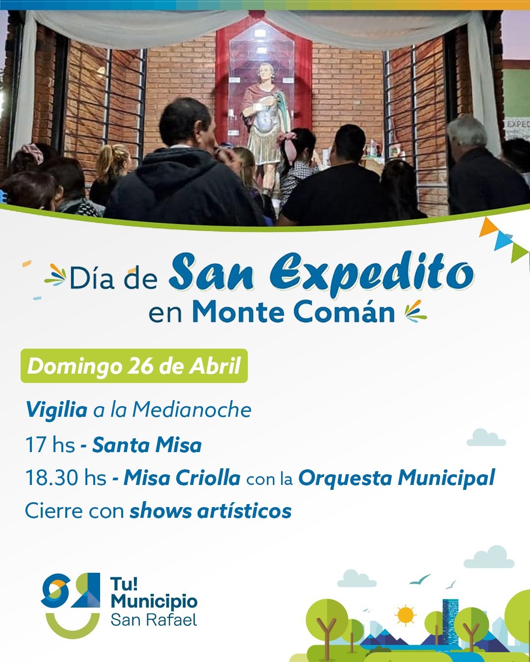 El mismo domingo 26 se llevará a cabo la celebración en honor a San Expedito en el santuario que lo homenajea en Monte Comán.