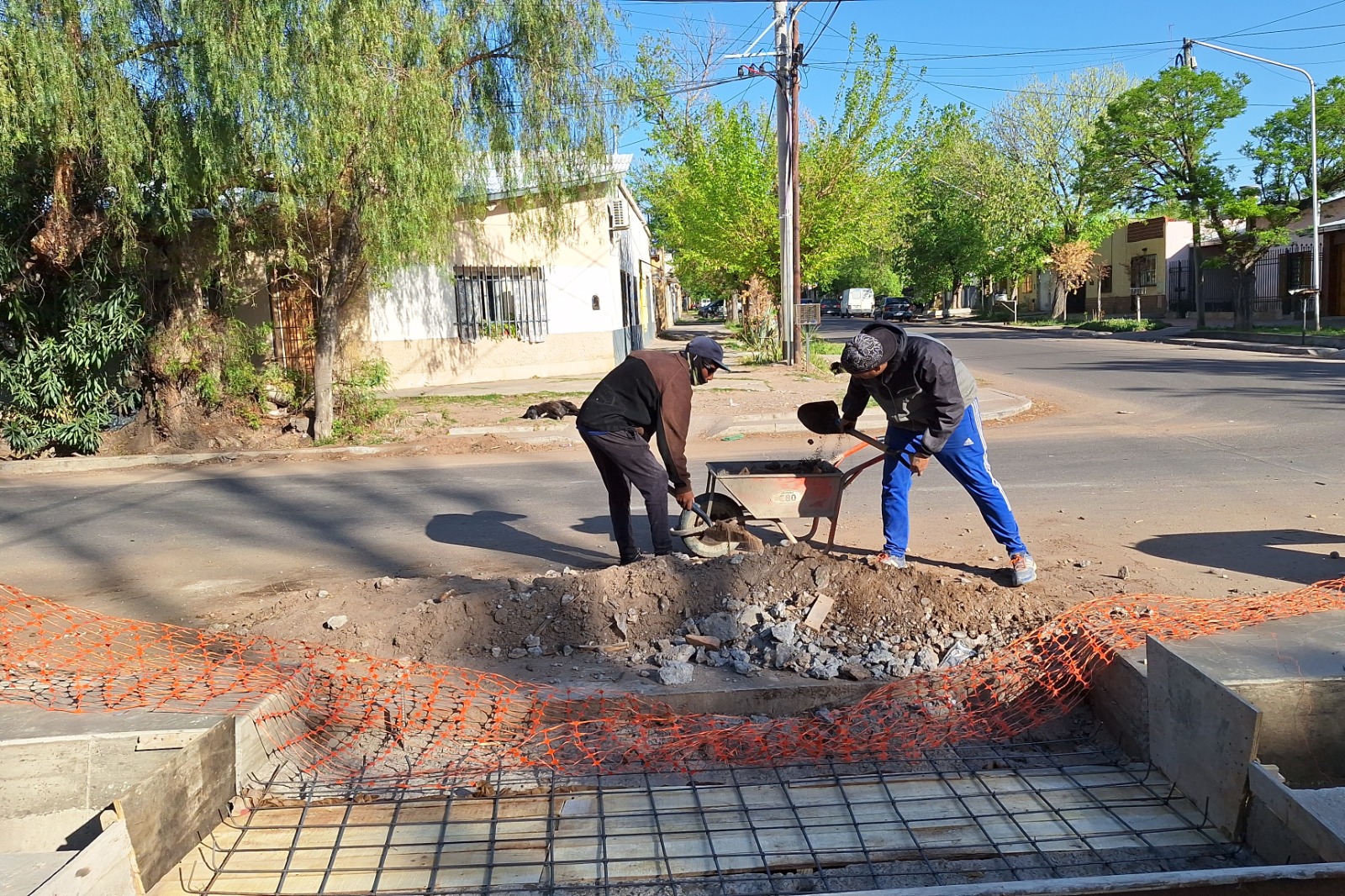 “Es la obra más avanzada. Esta primera etapa se encuentra al 90%, que incluye las obras gruesas de hormigones, senderos, esquinas con rampas, cordones y desagües pluvioaluvionales”, explicó la Secretaria de Obras Públicas, Andrea Fichetti.