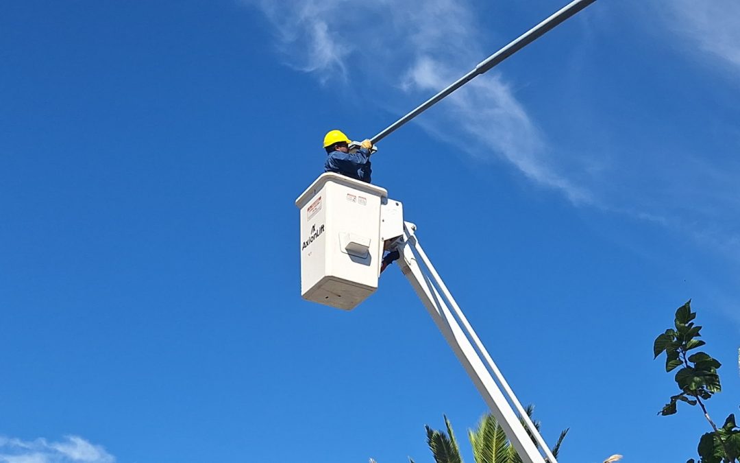 “Tras trabajar en zonas como las avenidas Cardonato y Sueta y en el distrito de El Sosneado, ahora ingresamos a trabajar en el recambio de luminarias desde la Rotonda de la Copa al Oeste”, explicó el director de Electrotecnia Pablo Yagüe.