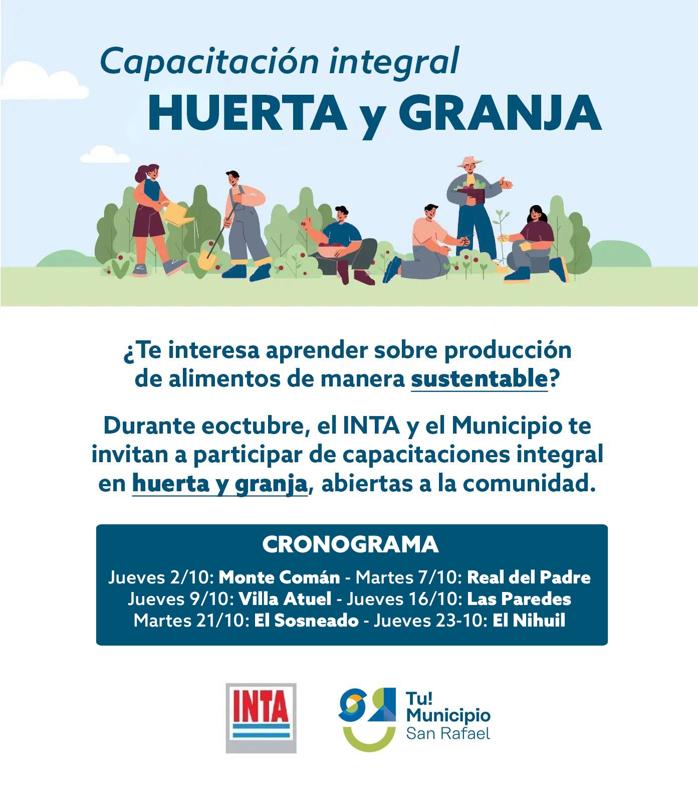 La propuesta comenzará este jueves 2 de octubre a las 10 de la mañana en el CIC de Monte Comán y consta de un taller de “capacitación integral” de huerta y granja”.