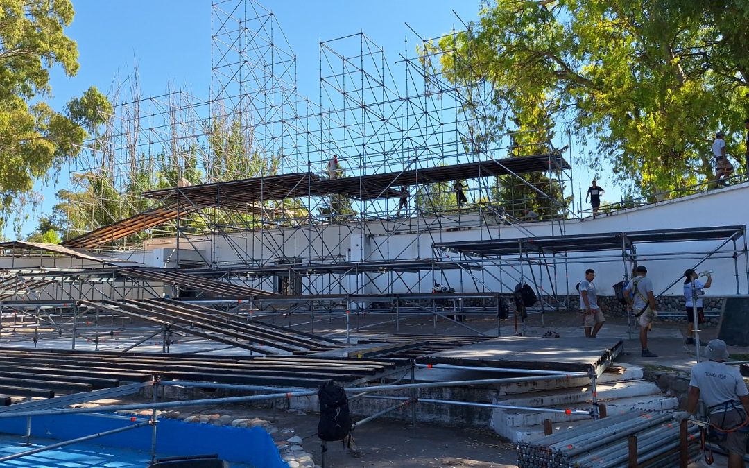 En el Chacho Santa Cruz se trabaja a todo ritmo en el armado del escenario principal de “Tierra de Sueños”.