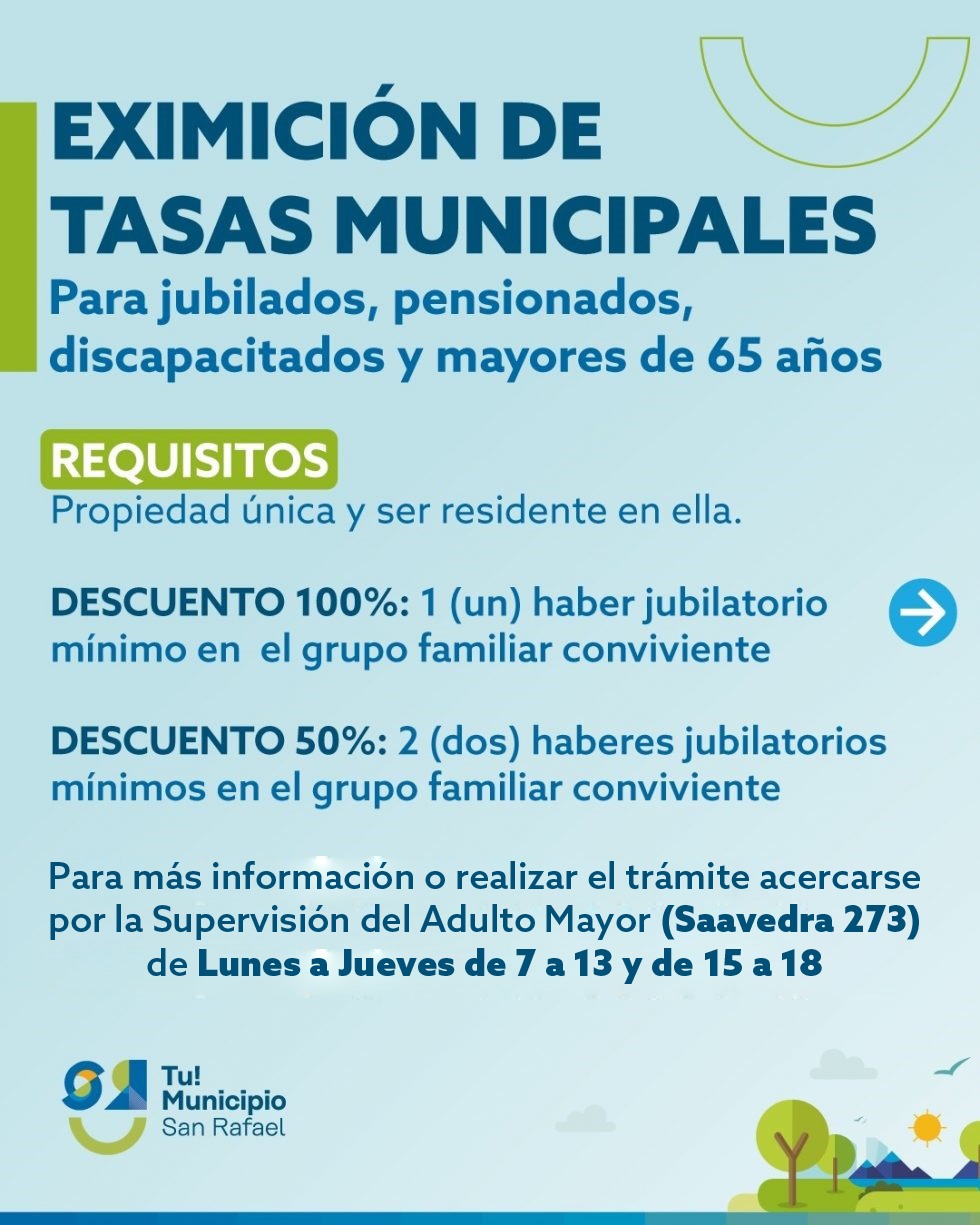 • JUBILADOS Y PENSIONADOS DE SAN RAFAEL PUEDEN ACCEDER AL BENEFICIO DE EXIMICIÓN DE TASAS MUNICIPALES